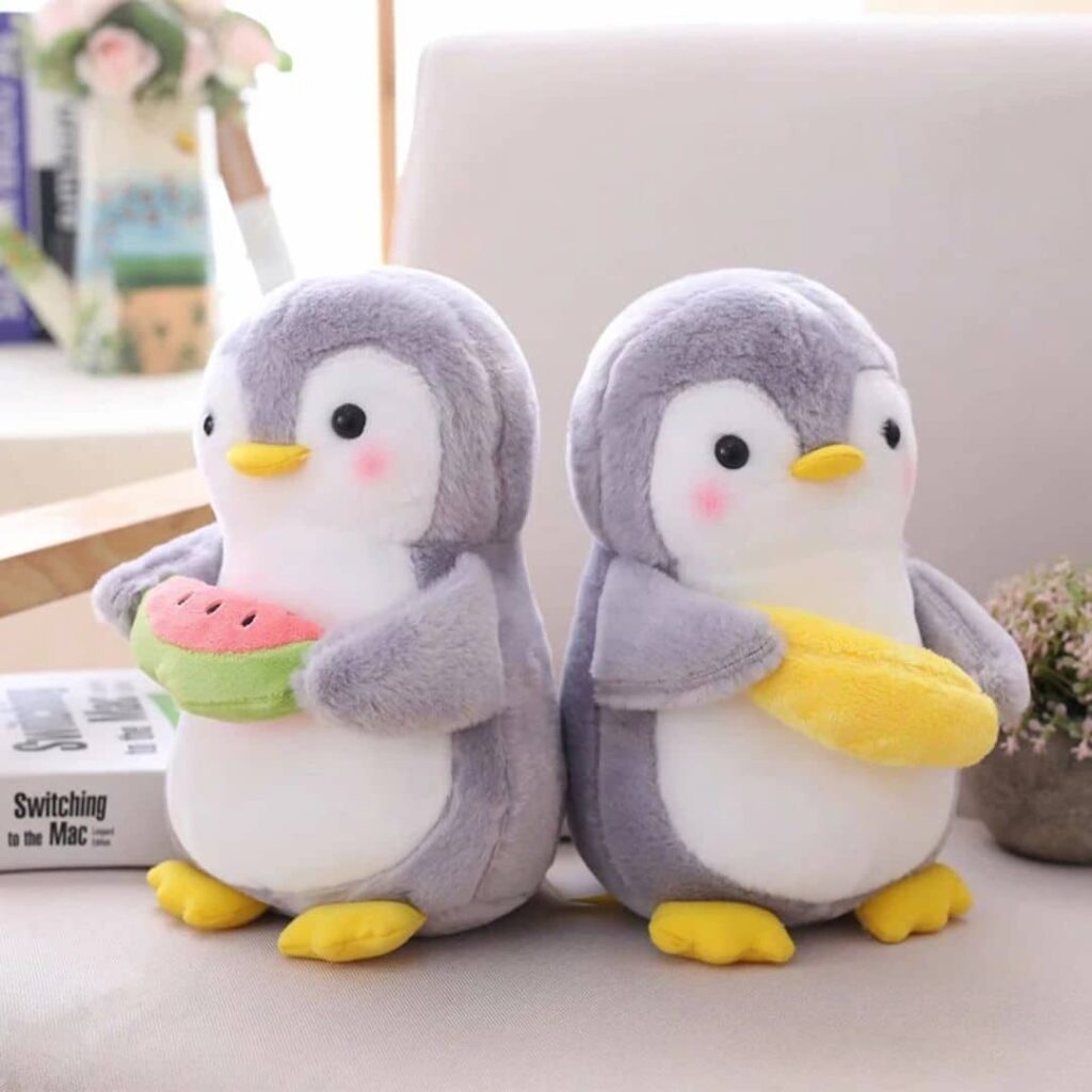 Ce pingouin kawaii invite aux plus tendres étreintes avec sa fourrure soyeuse. Ses courbes généreuses et son ventre rebondi en font un coussin naturel pour les moments de lecture.