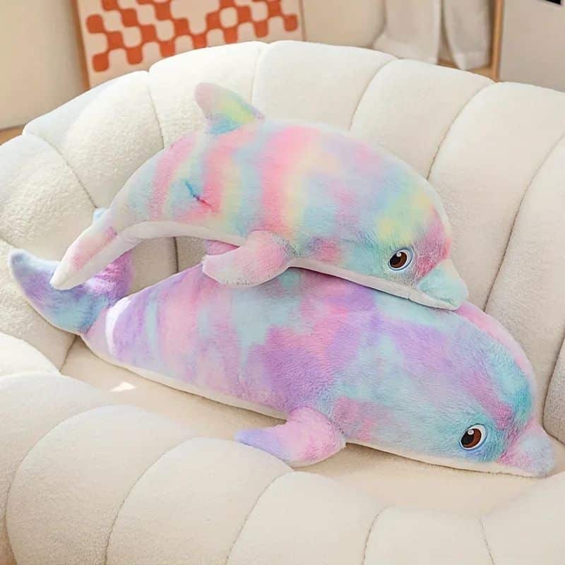Voici un adorable dauphin aux teintes multicolores qui deviendra le confident préféré de votre petit trésor. Disponible en quatre dimensions parfaites (50, 70, 100 et 130 cm), cette peluche marine enchante avec sa douceur incomparable et son garnissage moelleux. Ses nuances éclatantes transforment chaque câlin en moment de bonheur pur.