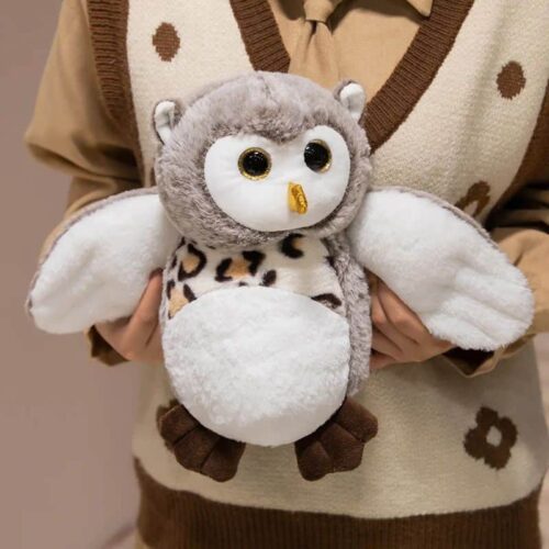 Ce charmant hibou en peluche gris enchante avec son pelage velouté et son ventre immaculé orné de fines taches décoratives. Ses mignonnes pattes marron ajoutent une touche naturelle à son allure douce. Parfait pour égayer l’univers des petits ou offrir du réconfort pendant le sommeil, ce tendre compagnon apporte chaleur et sérénité dans chaque espace.